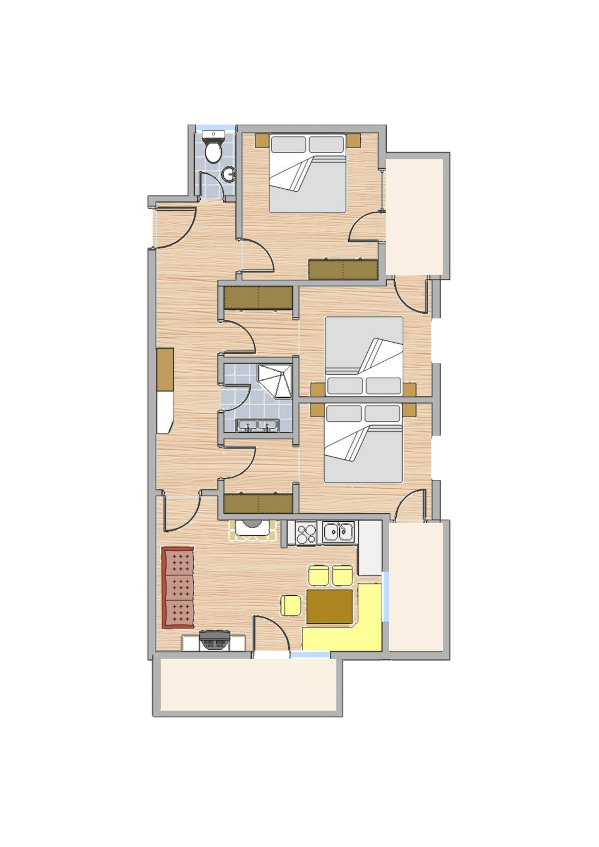 - 3 getrennte Doppelbettzimmer