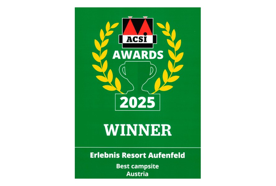 Beim renommierten ACSI Award 2025 wurde das Ferienresort Aufenfeld als bester Campingplatz Österreichs ausgezeichnet. Die Ehrung basiert auf den Stimmen tausender europäischer Camper, die unseren Platz für die traumhafte Lage im Zillertal, das vielfältige Angebot und die gelebte Gastfreundschaft wählten.