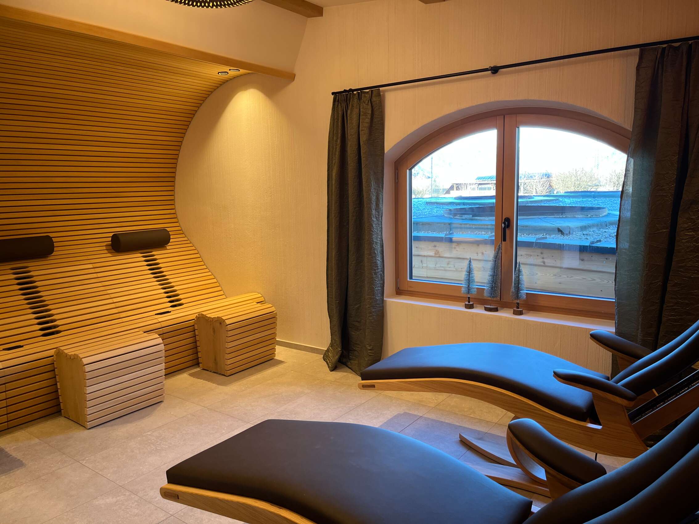 - zwei großzügige Ruheräume mit Daybeds und Relaxliegen