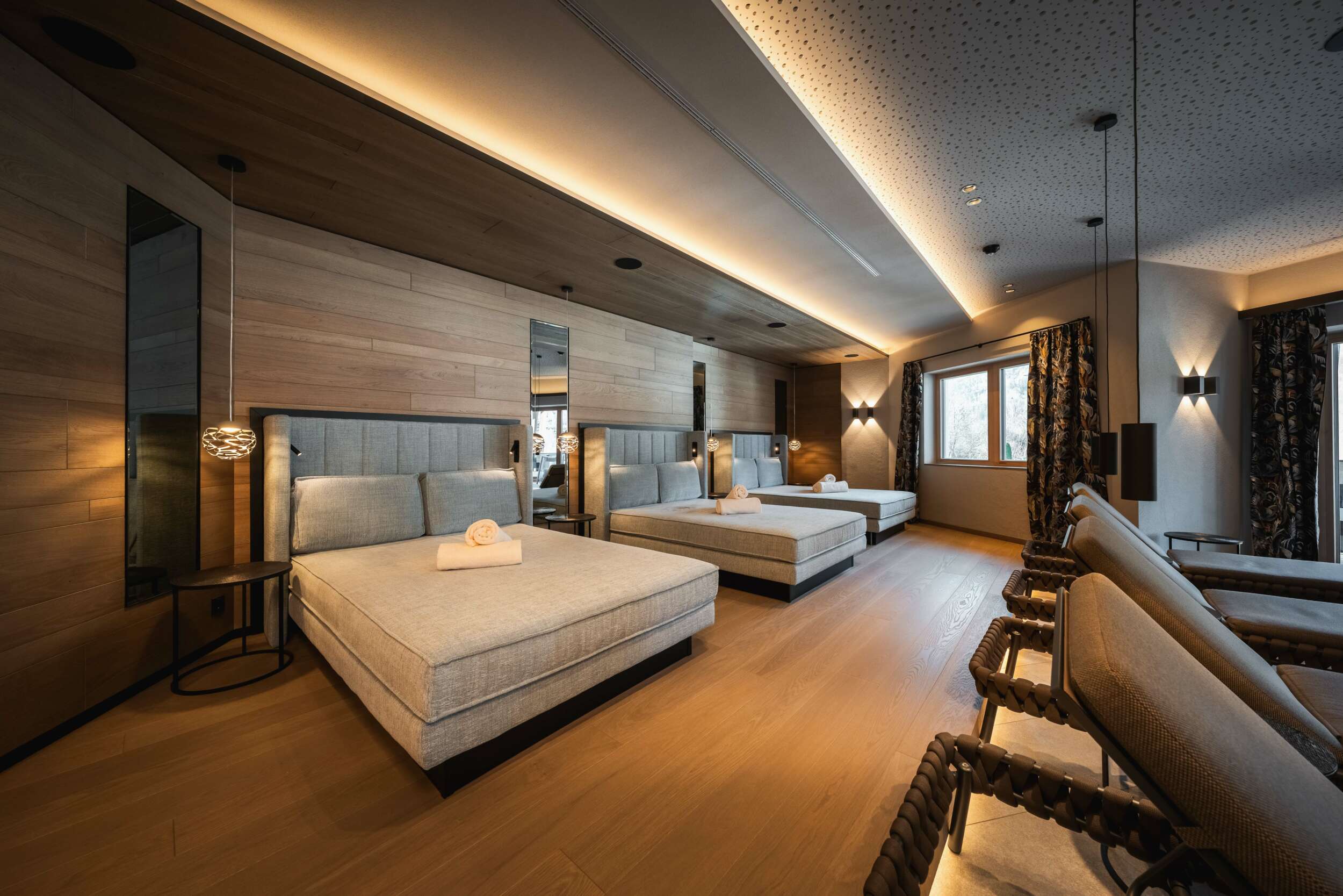 - Zwei großzügige Ruheräume mit Daybeds und Relaxliegen